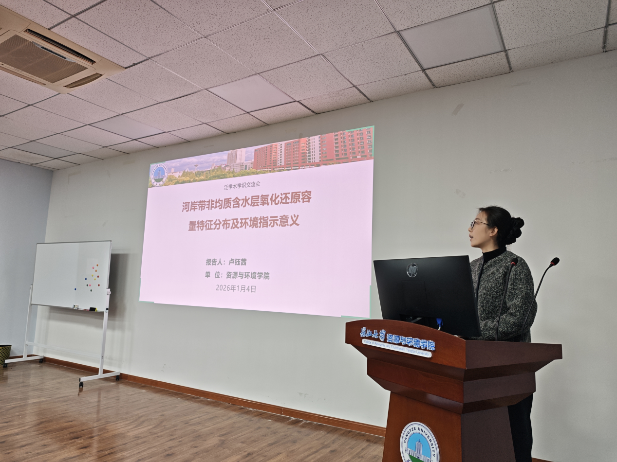 2026年1月4日下午2时,长江大学资源与环境学院“求实导师学术沙龙”系列讲座在石油科技大楼A305顺利举行。本次活动聚焦水环境前沿机理、研究方法与人工智能融合应用,由黄爽兵教授与卢钰茜特任副教授担任主讲,吸引了包括研究生、本科生在内的众多师生通过线下及线上方式参与交流。