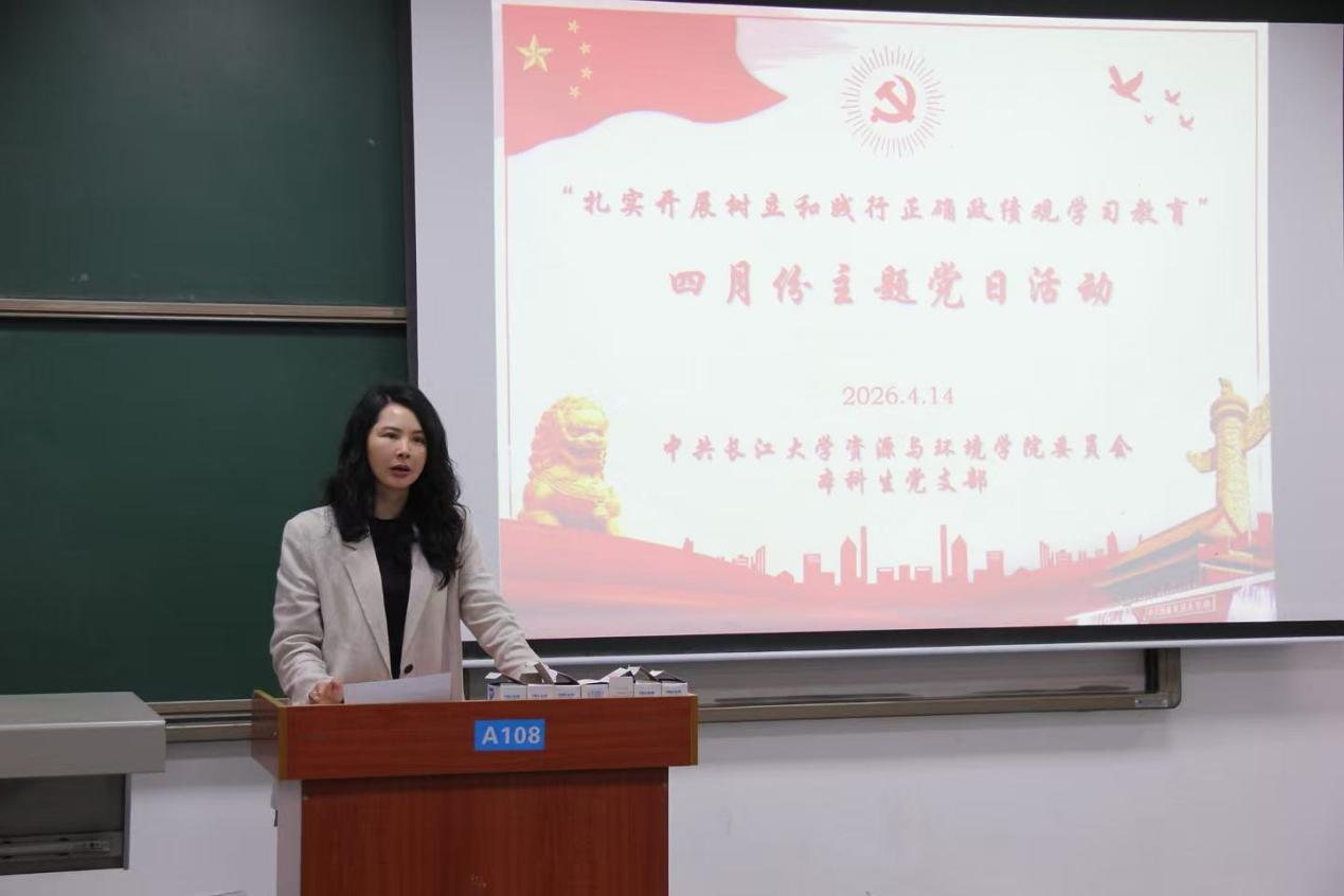 (通讯员 谭润格)为扎实推进党员思想政治教育,强化党员理论素养与责任担当,2026年4月14日下午18:00,学院本科生党支部于武教A108召开“扎实开展树立和践行正确政绩观学习教育”四月主题党日活动。本次活动由孙志仁同志主持,党支部书记刘娥老师及全体学生党员参加。