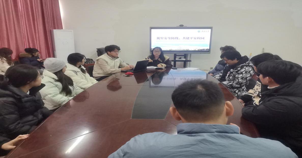 (通讯员 图/刘梦慧 文/苏新宇)元旦假期将至,为切实保障学生假期人身财产安全,强化安全防范意识。12 月 22日中午,资源与环境学院在华林公寓八栋三楼活动室组织召开元旦假期安全专题部署会。会议由学工办主任李春花老师主持,全体安全委员及宿建部成员参加。 会上,宿建部苏新宇同学结合假期安全特点,以 PPT 形式开展专题宣讲。宣讲内容围绕消防安全、防诈骗安全、出行安全及考试诚信四大核心展开向大家介绍假期应注意的安全事项。 李春花老师在总结部署中提出明确要求:一是各班需以此次会议为抓手,于假期前完成班级安全自查,重点排查宿舍安全隐患,确保不留安全死角;二是安全委员要切实履行职责,通过班级群等渠道持续普及假期安全知识,强化同学们的防范意识;三是全体同学要牢记安全准则,假期期间保持通讯畅通,遇紧急情况第一时间向老师或警方求助,做到安全文明度假。 此次专题部署会立足假期安全重点,进一步细化安全防范措施,强化了学生的安全责任意识和自我保护能力。学院将持续秉持 “安全第一、预防为主” 的工作理念,扎实做好假期安全保障工作,为同学们度过一个平安、愉快的元旦假期保驾护航。(审核 李春花)