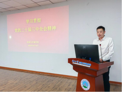 王宁书记指出,党的二十大与二十届三中全会既一脉相承又紧密衔接,共同构成了引领新时代新征程的宏伟行动纲领。党的二十大描绘了以中国式现代化全面推进中华民族伟大复兴的壮丽蓝图,其中关于“推动绿色发展,促进人与自然和谐共生”、“实施科教兴国战略”等一系列重要论述,为资源与环境学院的发展指明了方向,提供了根本遵循。二十届三中全会聚焦“进一步全面深化改革、推进中国式现代化”作出系统战略部署,特别是在生态文明建设、教育科技人才一体化发展等关键领域的改革要求,为学院破解发展瓶颈、激发内生动力与创新活力提供了精准的行动指南。