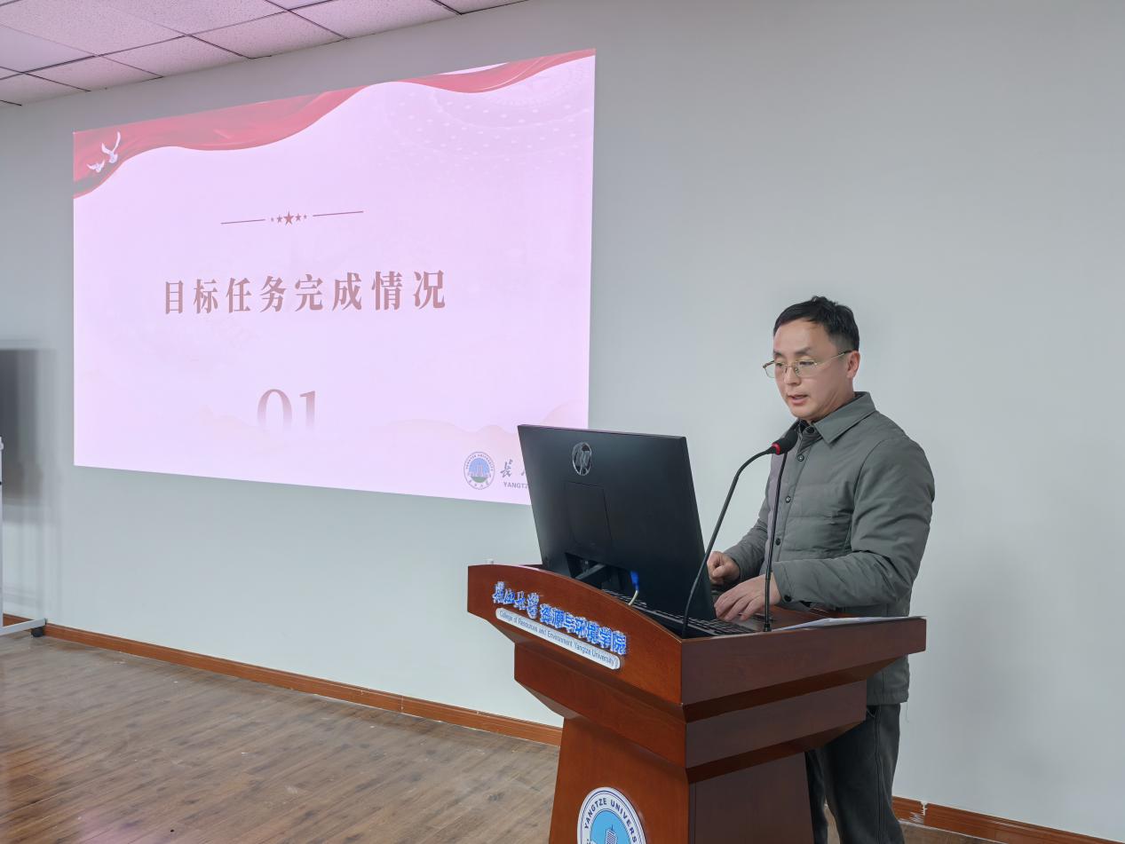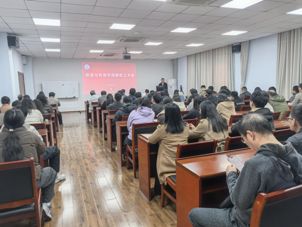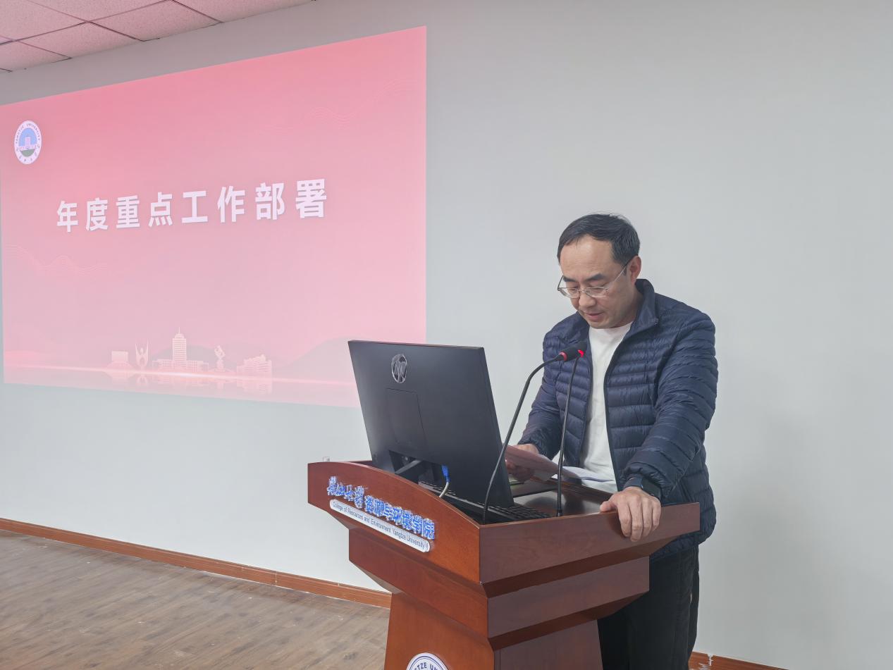 会上,院长夏小平全面传达学校2025年工作总结暨2026年工作动员会精神,系统回顾学院2025年取得的成绩,深入剖析当前发展短板,并对新一年重点工作进行部署。过去一年,学院在人才培养、科学研究、平台建设等方面实现多项突破:本科考研录取率位居全校第一,国家级一流课程立项、高水平科研项目与论文发表、科研经费总量均有显著提升,年度考核稳居全校前列。2026年,学院将聚焦一流学科建设攻坚、资源与环境专业学位博士点申报、水文与水资源工程专业工程教育认证三大核心任务,持续加大高层次人才引育力度,优化科研经费结构,力争在标志性成果上实现新突破。